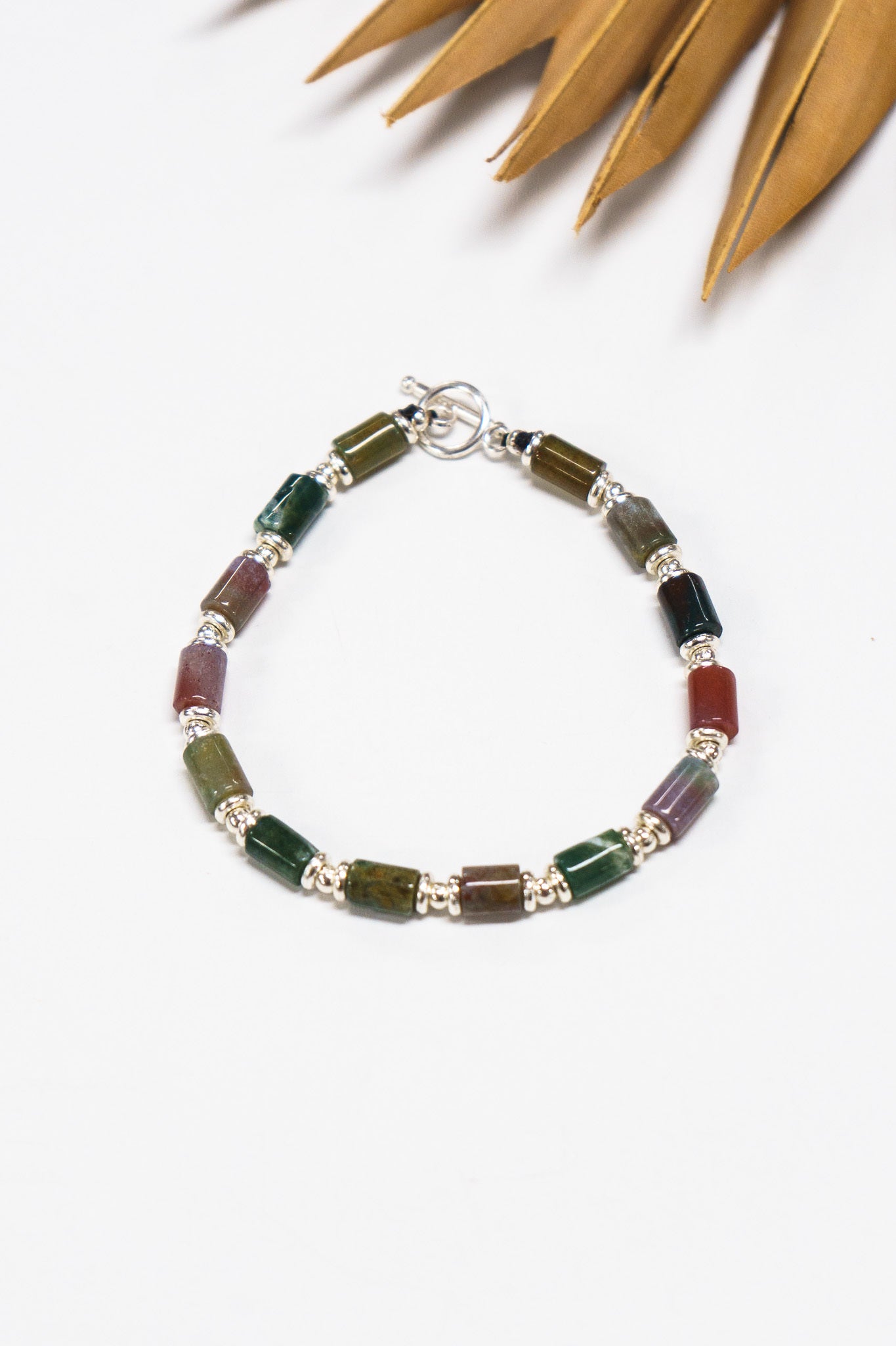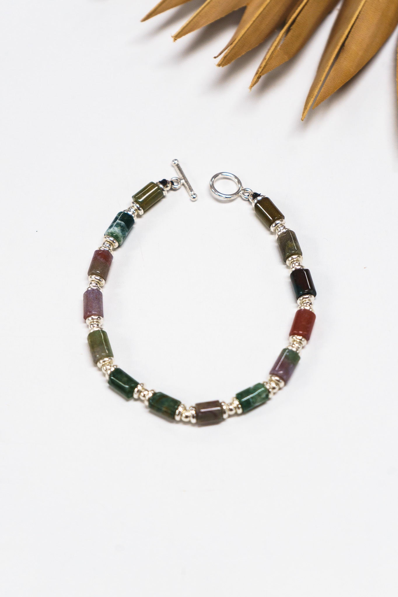 Multi-hued jasper beads celebrate the beauty of natural stone in earthy greens, deep reds, and neutral tones.