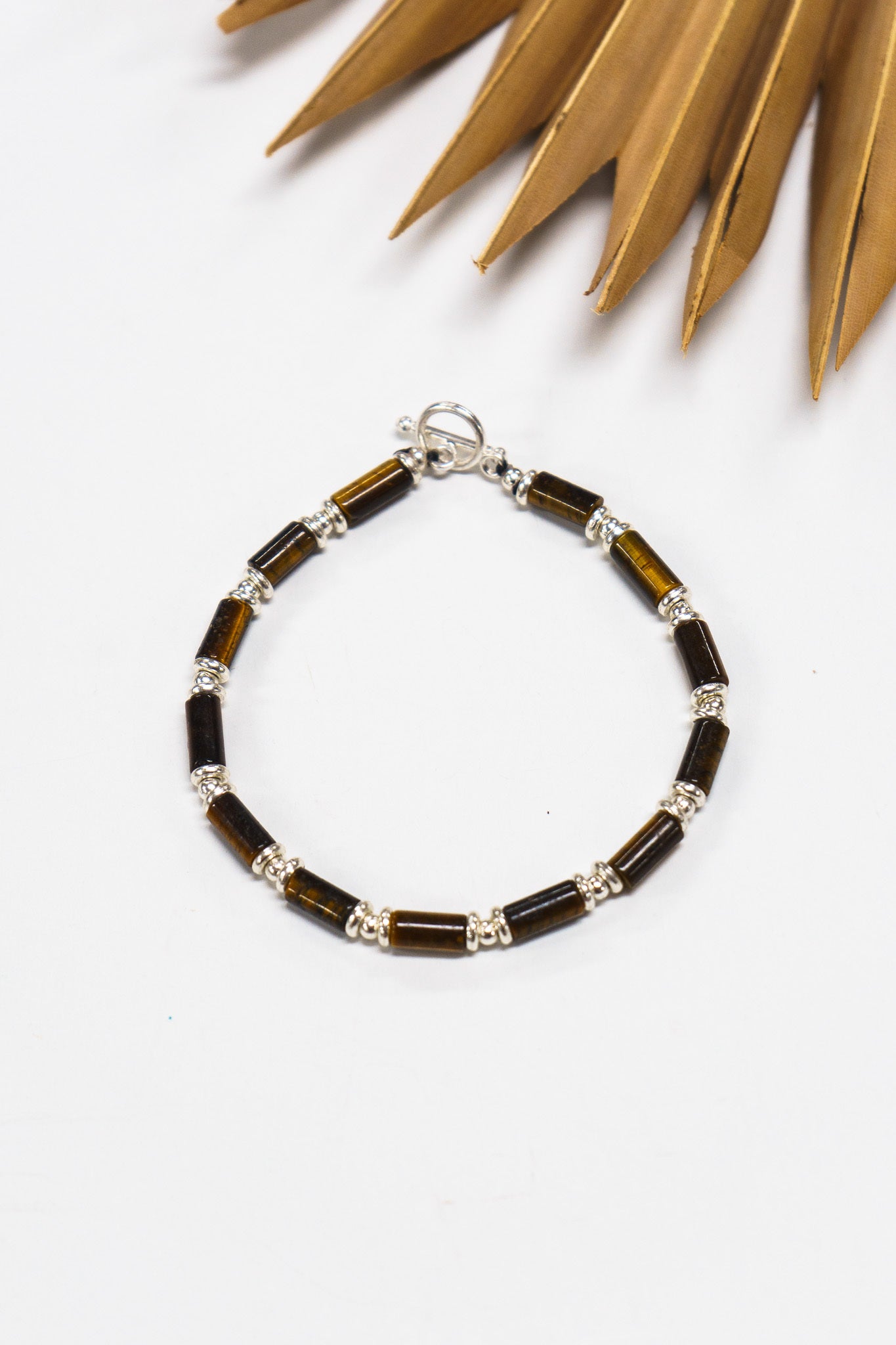 Rich tiger’s eye beads with their natural shimmer are balanced with silver accents, symbolizing strength and focus. Perfect for stacking or solo styling.