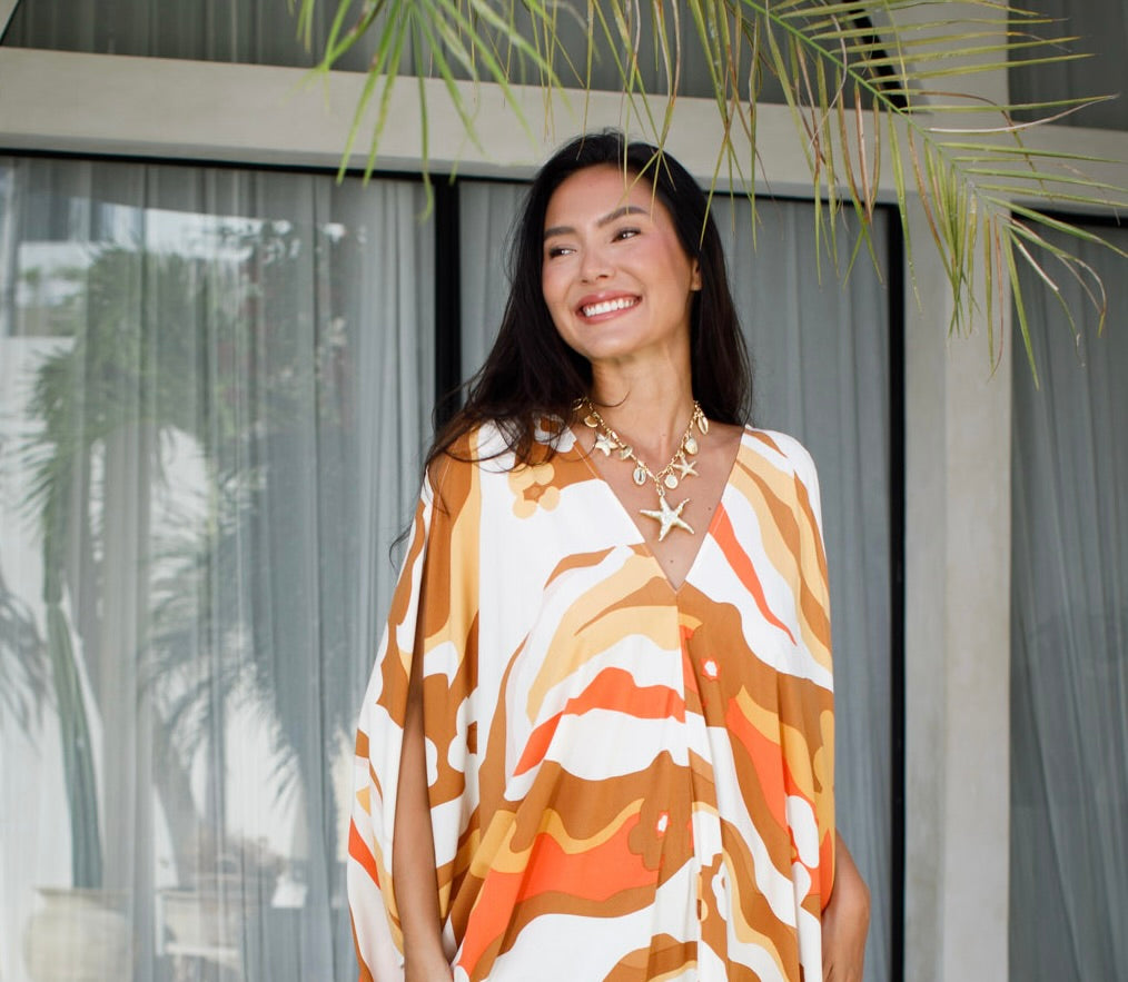 A collection of gold starfish, shell, and ocean-themed charms dance along chunky gold hoops and chain. This necklace brings a bit of seaside magic to any outfit.