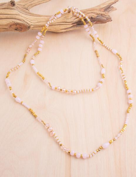 The Vintage Layer Necklace features a delicate mix of gold and crystal beads, creating a timeless, layered look. A classic piece that adds subtle shimmer to any outfit.