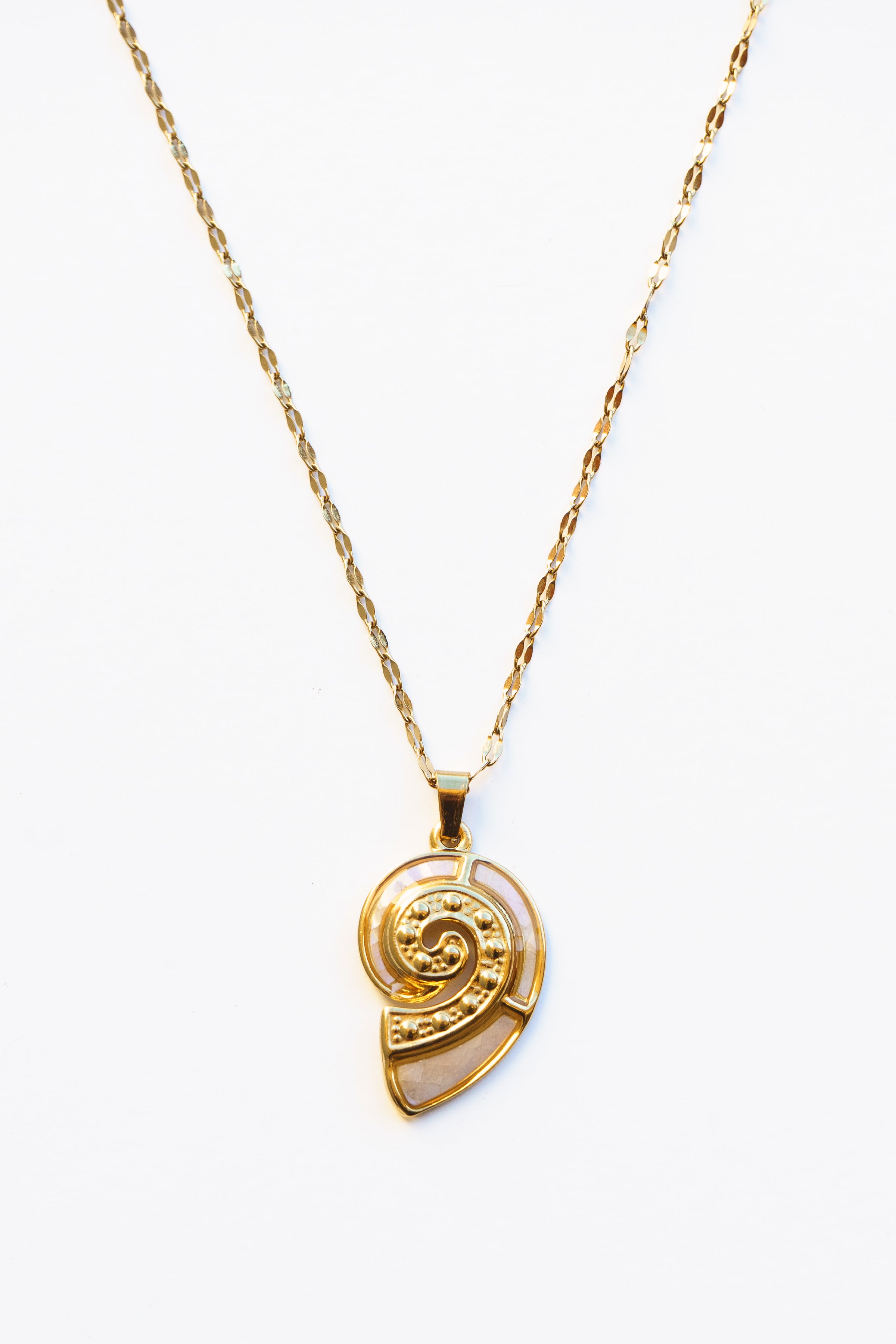 A classic ocean swirl pendant in gold stainless steel, designed to shine like the sea at sunrise.